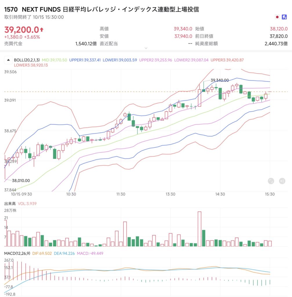 【2025年10月15日】NF日経レバ:予想外の強烈リバウンド、38,000円台を固め39,000円台回復!