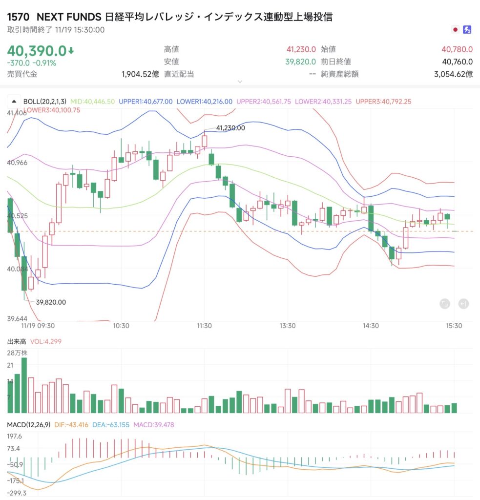 【2025年11月19日】NF日経レバ(1570)の結果と反省|自律反発は限定的、戻り売り優勢の一日
