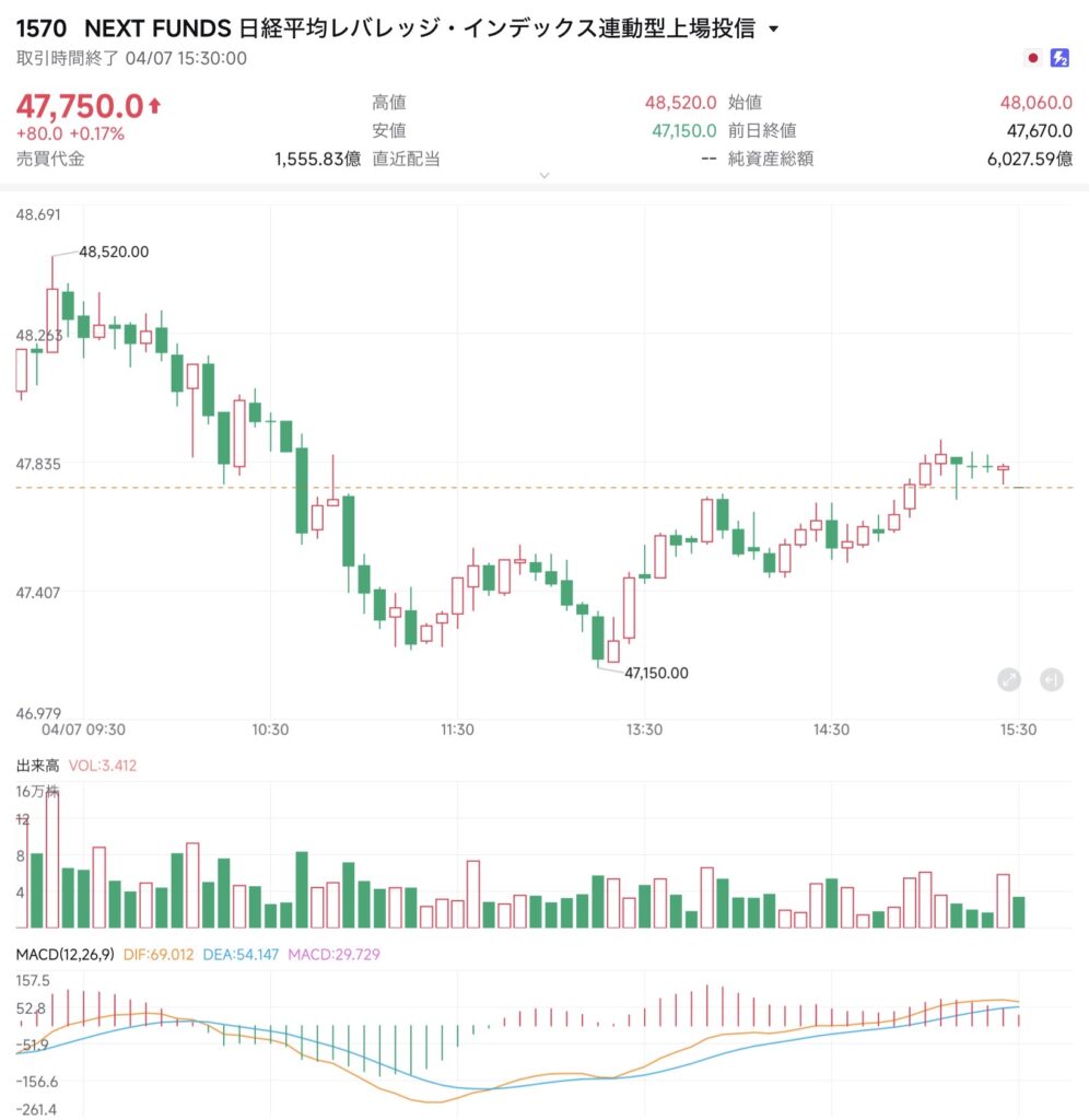 想定レンジは前日のボラティリティを考慮し「47,500円 〜 48,500円」とやや広めに設定。レンジの下限では反発を狙い、上限では利益確定を優先する、細かく利幅を取る立ち回りを計画していた。