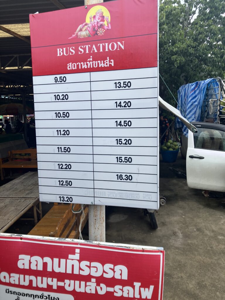 また、エカマイバスセンター発の乗合バス(ロットゥー)では定員が限られており、予約なしで予定通りのバスに乗れるとは限られておらず、ロットゥーでは狭い車内に押し込められての2時間の移動を余儀なくされます。