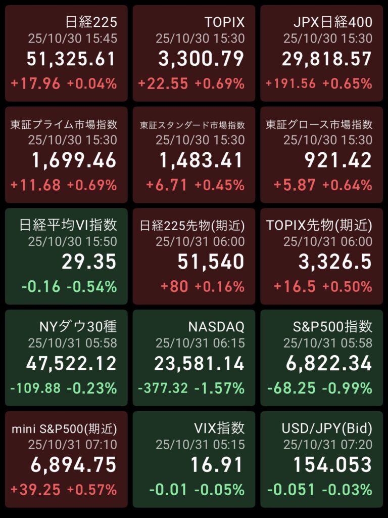 30日の日経平均は小幅ながら3日続伸し、終値は 51,325円(+17円)。