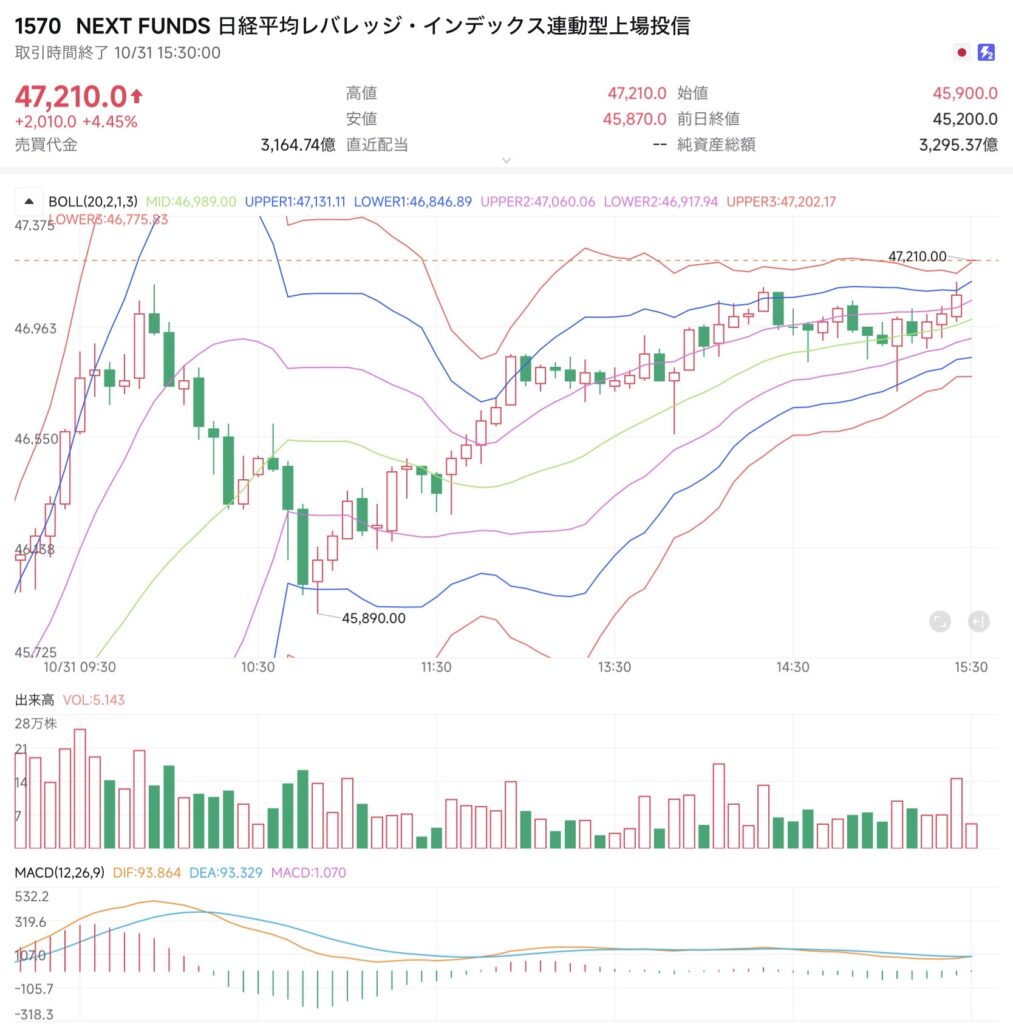 - NF日経レバ(1570):始値 45,900円/高値 47,210円/安値 45,870円/終値 47,210円(+2,010円)