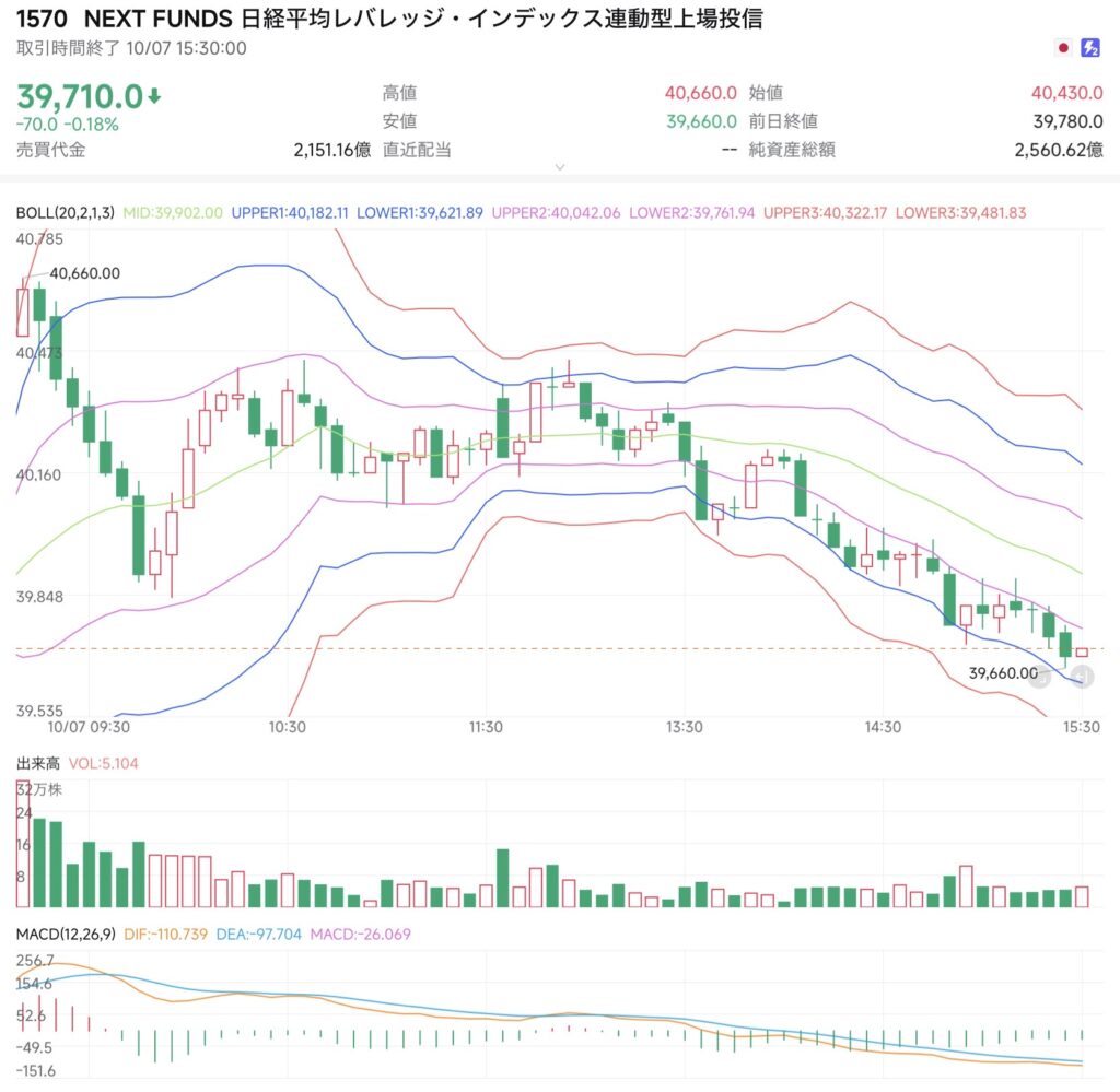 • NF日経レバ(1570):始値 40,430/高値 40,660/安値 39,660/終値 39,710(前日比 -70)