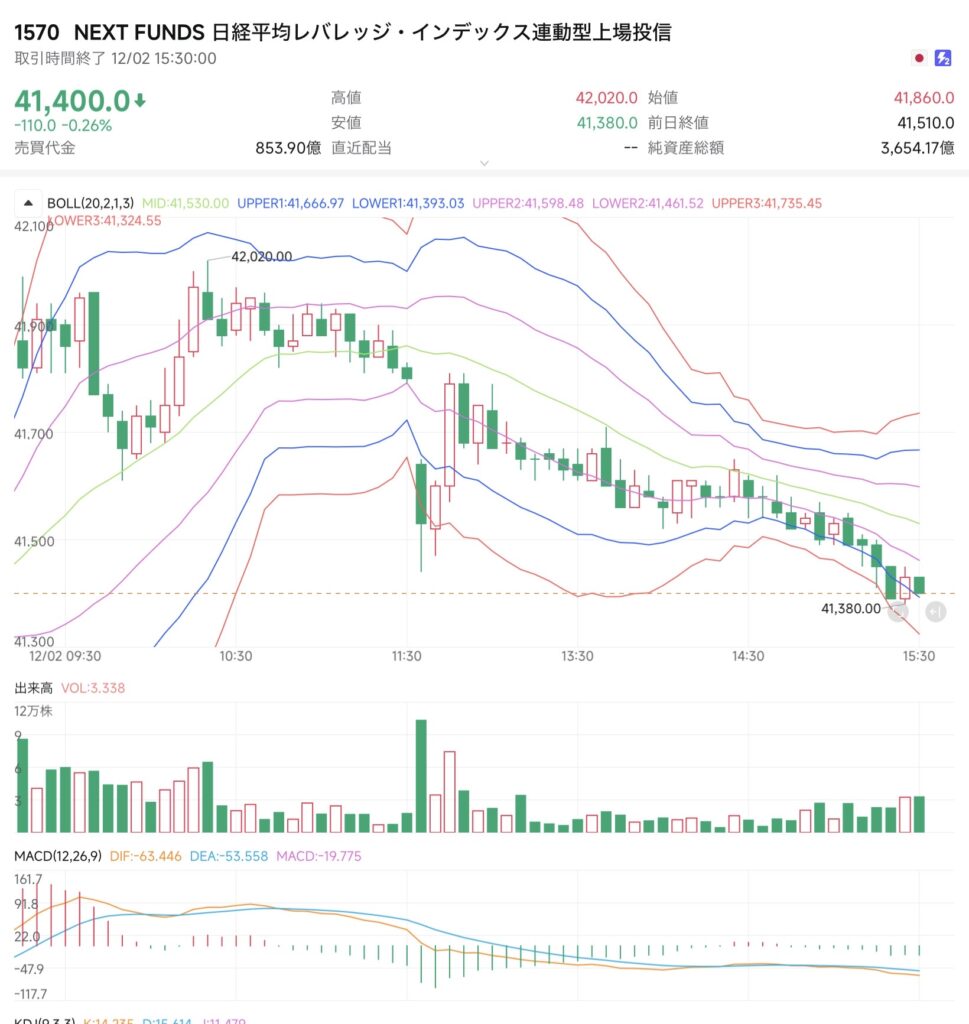 NF日経レバの想定レンジは、41,200〜42,500円を軸に見ておく。