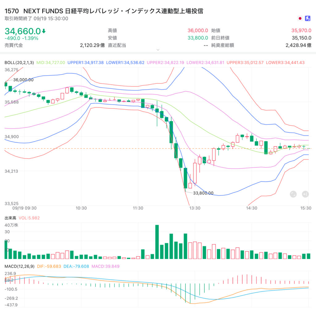 本日はNF日経レバ(1570)の想定レンジを34,900円〜35,700円と設定し、35,000円近辺を押し目買いの支持線と見立て、35,600円を超える場面で利確を優先する方針とした。米株高や円安進行を背景に寄り付きは強気と予想されたが、日銀会合を控え慎重姿勢も意識する戦略であった。