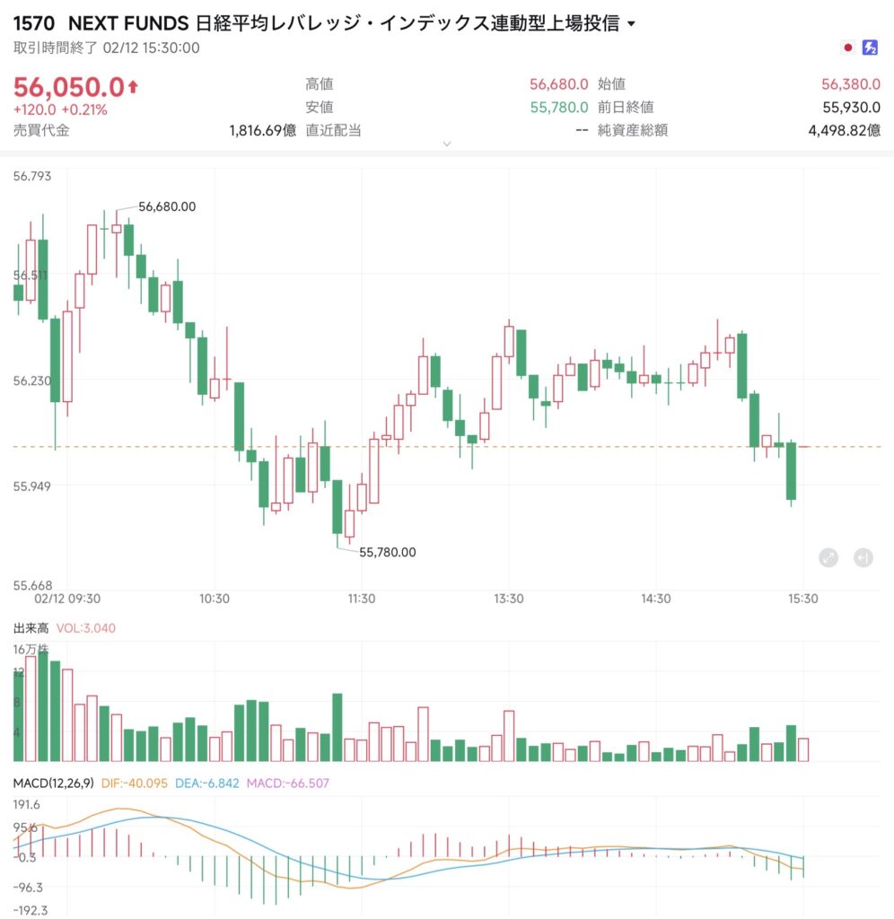 2026年2月12日 NF日経レバ(1570)の結果と反省|58,000円到達後の失速が示した「初動の終わり」