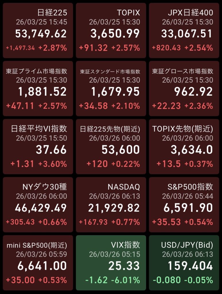 ・終値 53,749円(+1,407円)