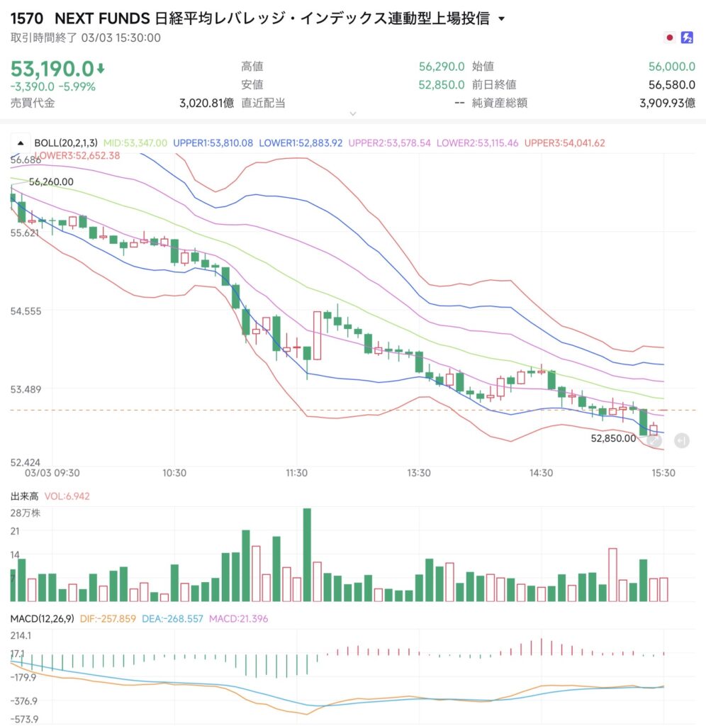 1570は安値52,850円まで急落。