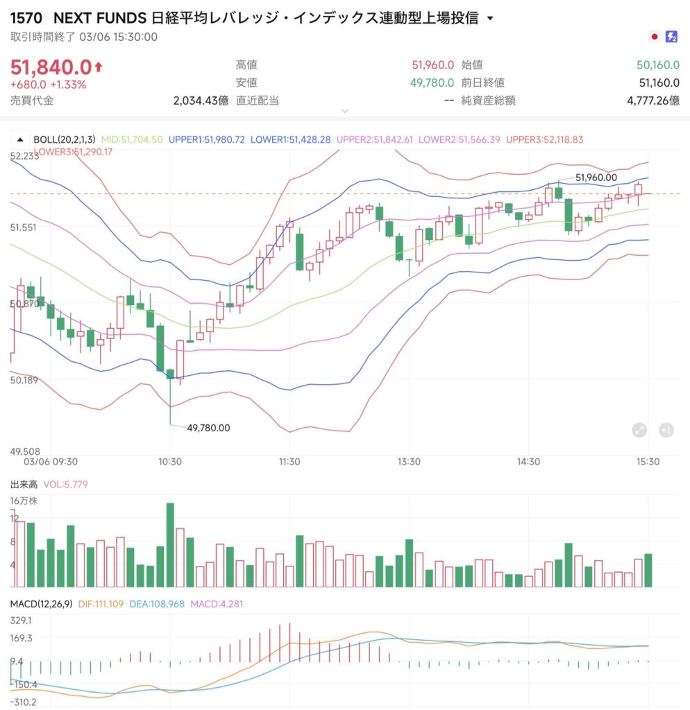 1570も同様に、安値49,780円から力強く反発し、終値は51,840円と堅調であった。